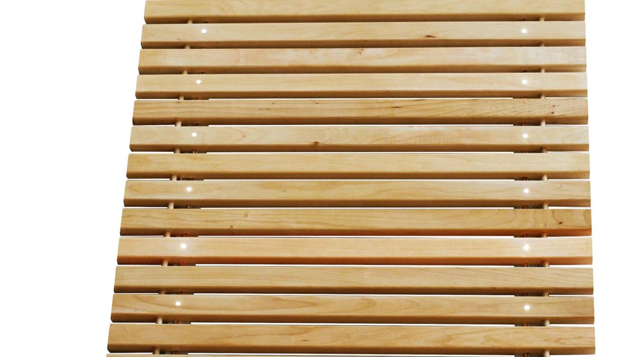 7 Naturaalne puidust vaip LED tuledega.